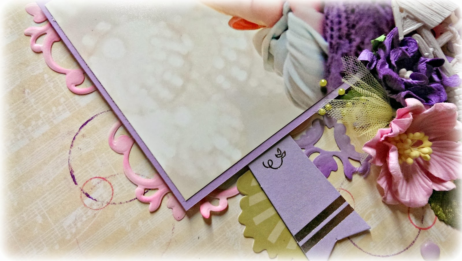 Then I cut two of the larger size banners from the Secret Tresures collection. The larger in the purple and the smaller in white. I outlined them with my purple Zig marker. I just hand wrote the title on the white one.